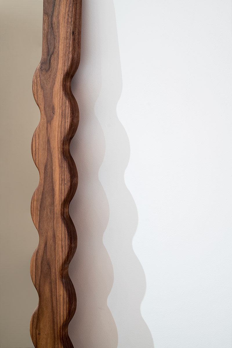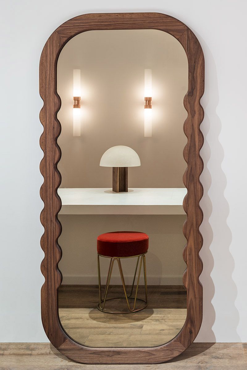 Espejo de 195 cm de alto y 90 cm de ancho con acabado bronce y marco en nogal macizo americano de 9 cm de ancho y 3,5 cm de espesor.