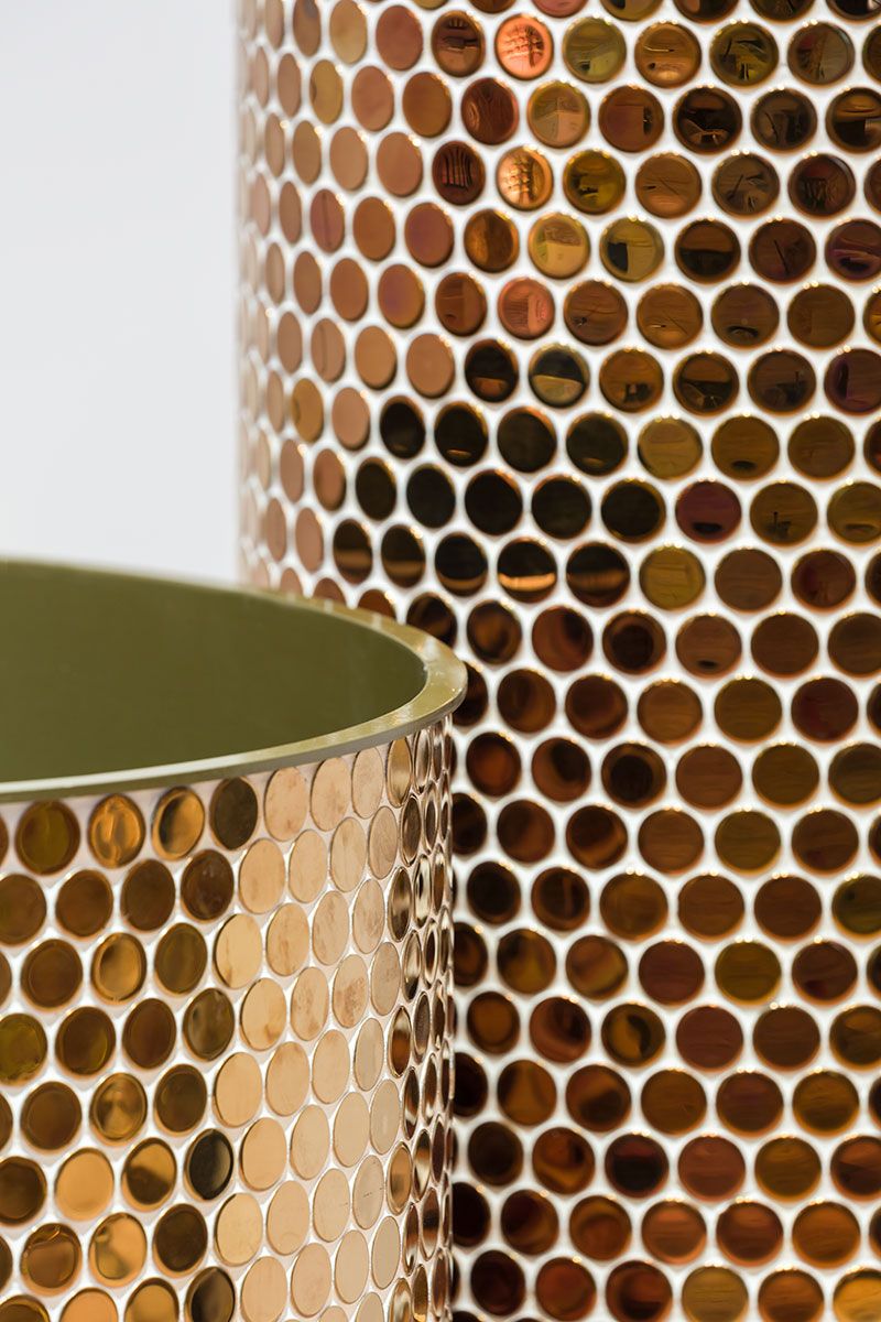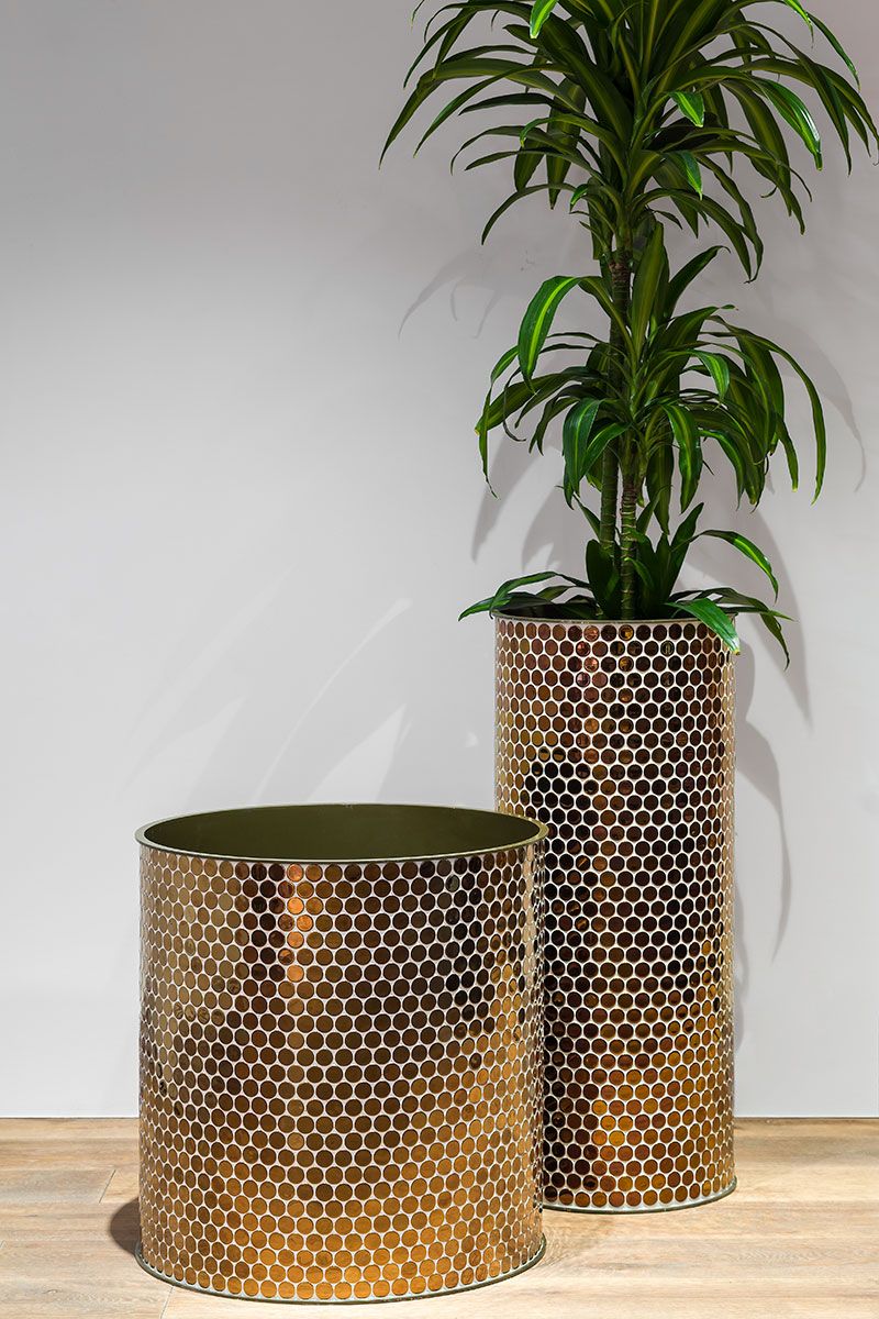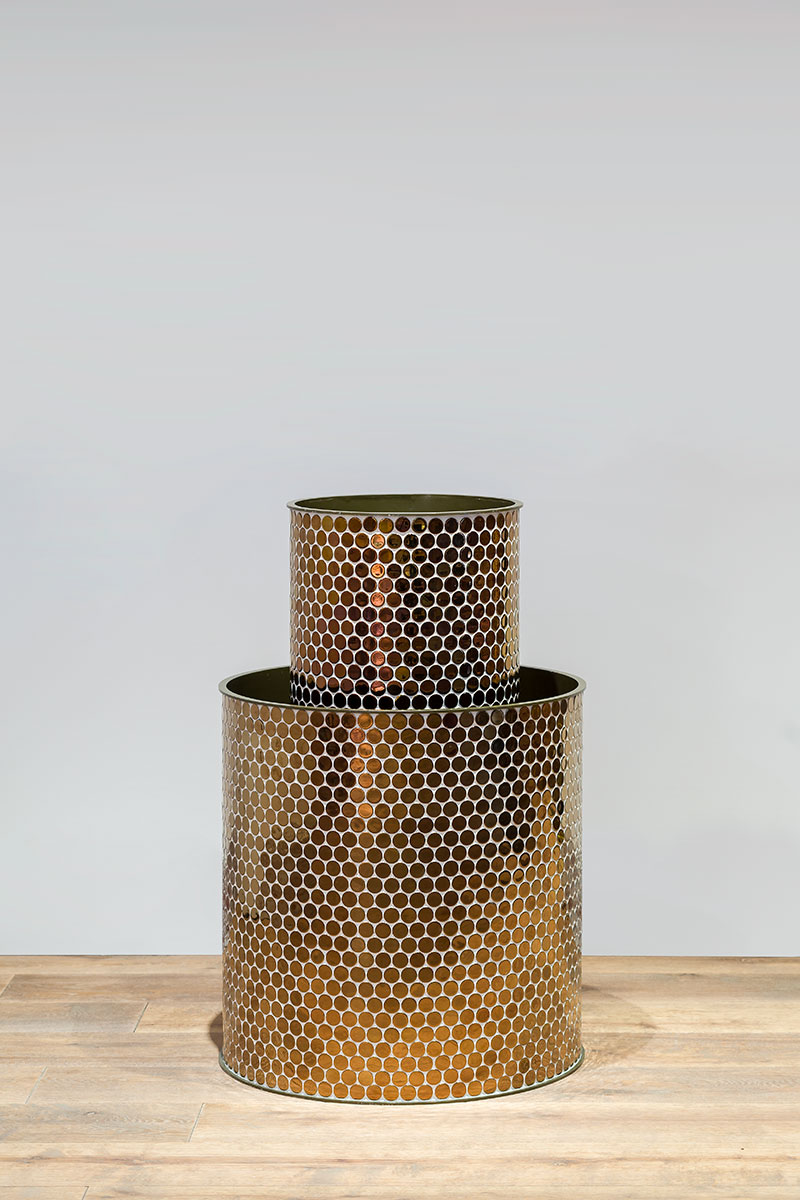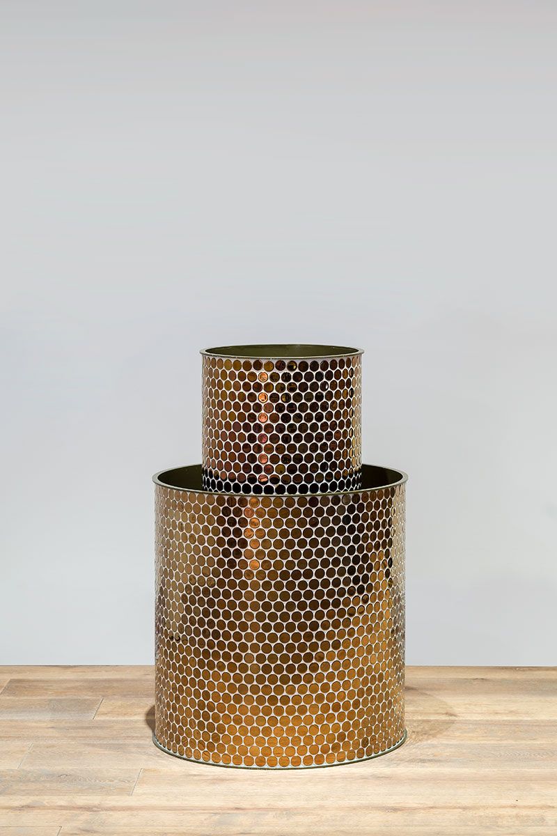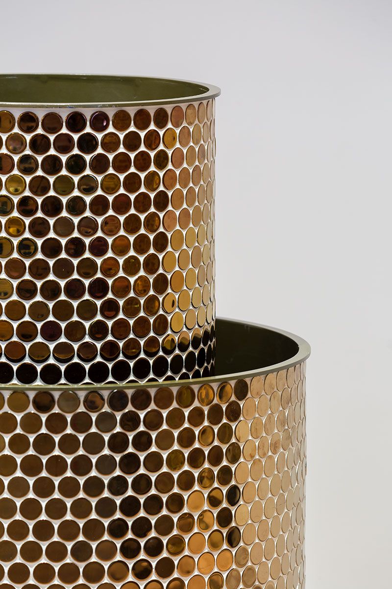 Macetero recubierto con gresite redondo acabado titanium brundusi.