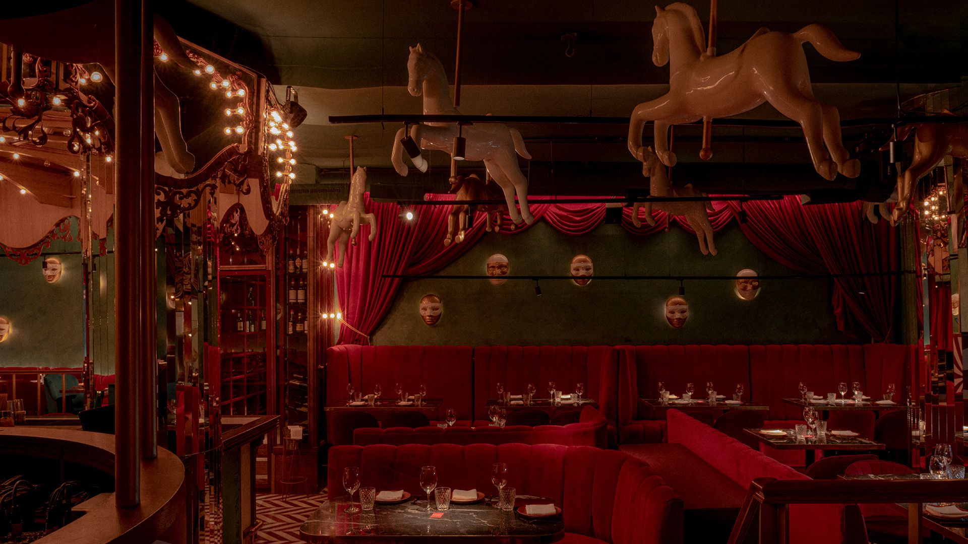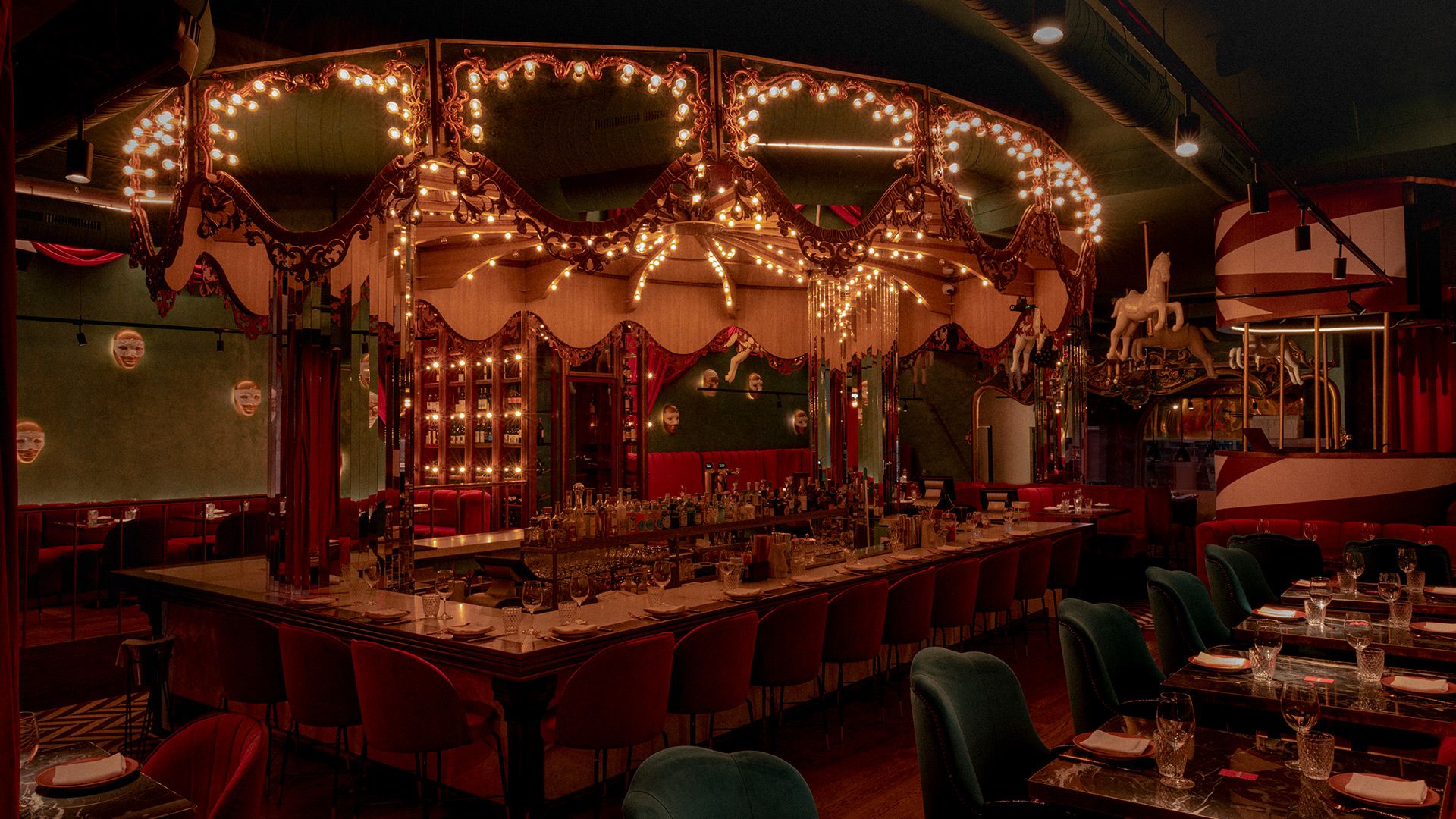 Nada más acceder a Arrogante lo que más llama la atención son los detalles y referencias que hacen alusión mundo del circo y a la temática feriante del giostraio. Sin duda, la estrella indiscutible del local es el tiovivo que funciona como elemento central y que marca y recoge la barra junto a unos caballitos que toman vida propia. Formando un carrusel, se descuelgan del techo al ritmo de la música, subiendo y bajando como en una feria.